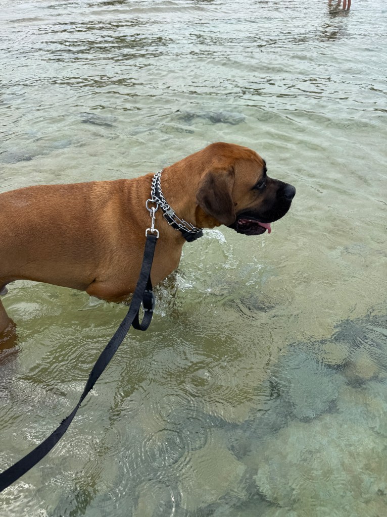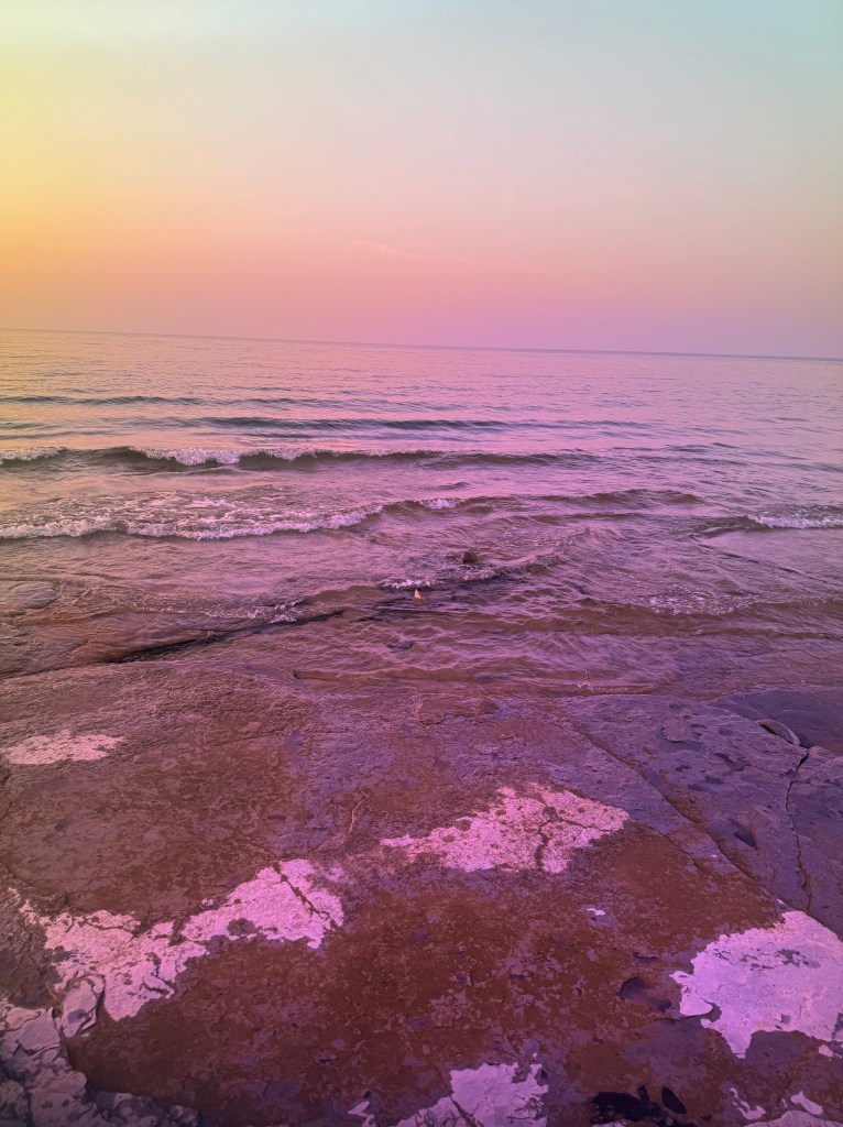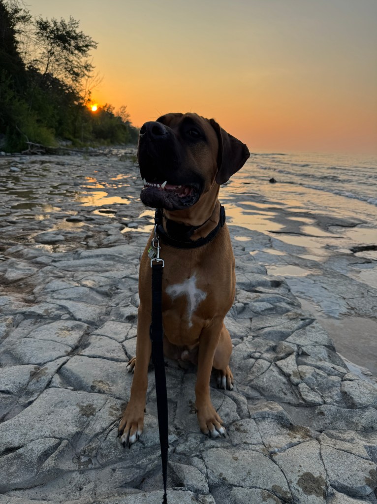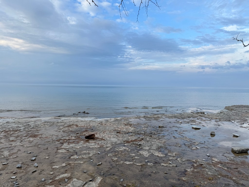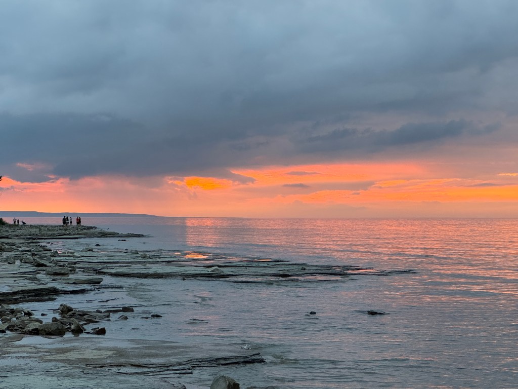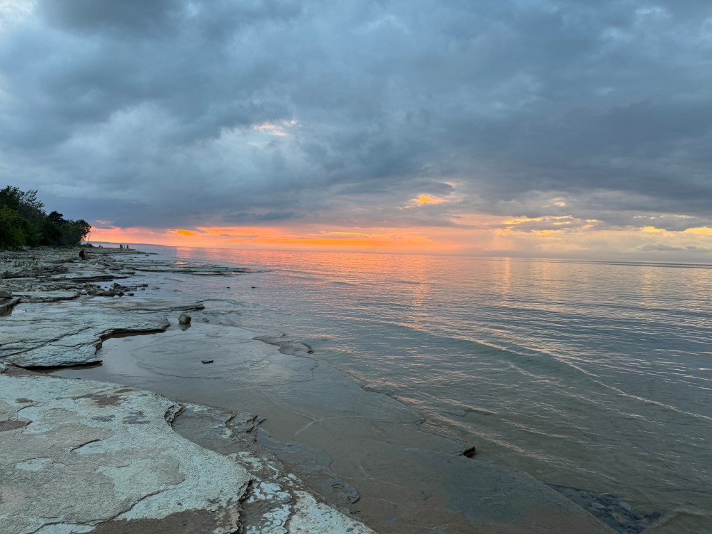 If you’re camping at Craigleith, be prepared to leave the campground to find some things to do. We spent Saturday driving through Meaford, Thornbury and Collingwood. There is a lovely dog “beach” (again, all rock) in Collingwood at Sunset Point Beach. This was a really nice area that had lots of walking paths, parks, food, and a really large Inukshuk.