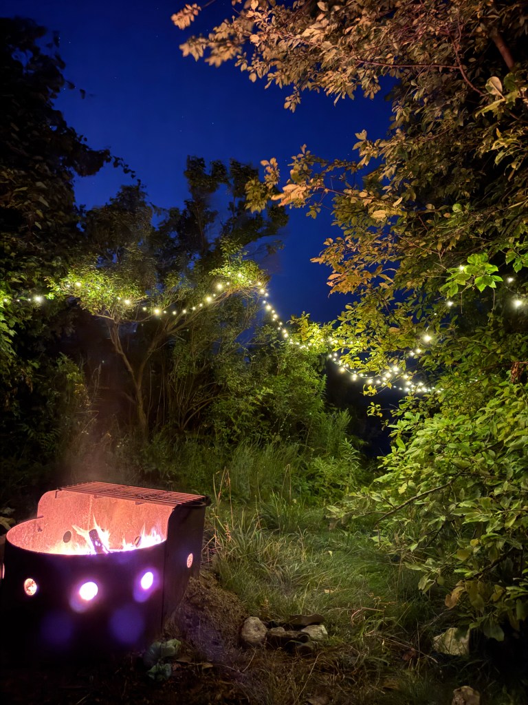 Our site was about 30′ x 20′ and had trees to the right side of the site (if looking from the road), and nothing blocking us from our neighbours on the left side (other than their giant trailer). The water hook-up would randomly purge, and spray water on the electrical hook up pole. The fire pit was located at the rear of the site, in the middle of the path to the lake. The fire pit was also located directly under a tree, with the canopy of the tree about 15′ over the fire pit. Basically – the site was just large enough for the trailer, our truck and a small amount of room for our gear (Table, chairs, picnic table, etc).