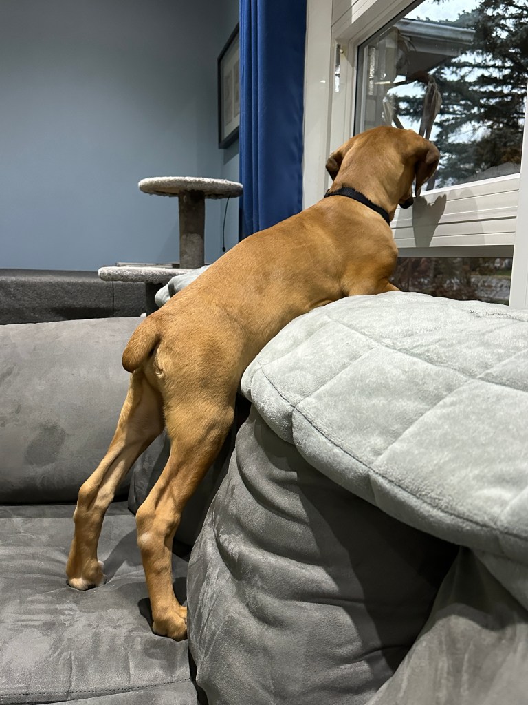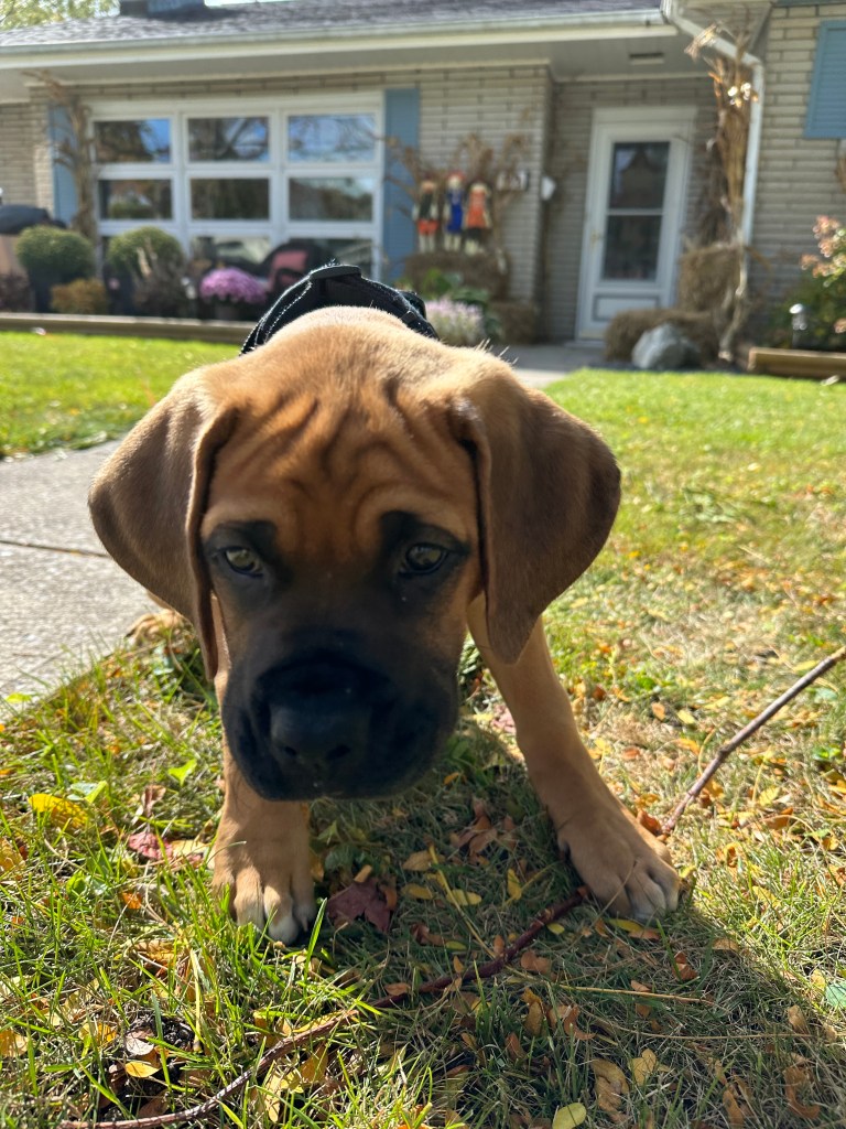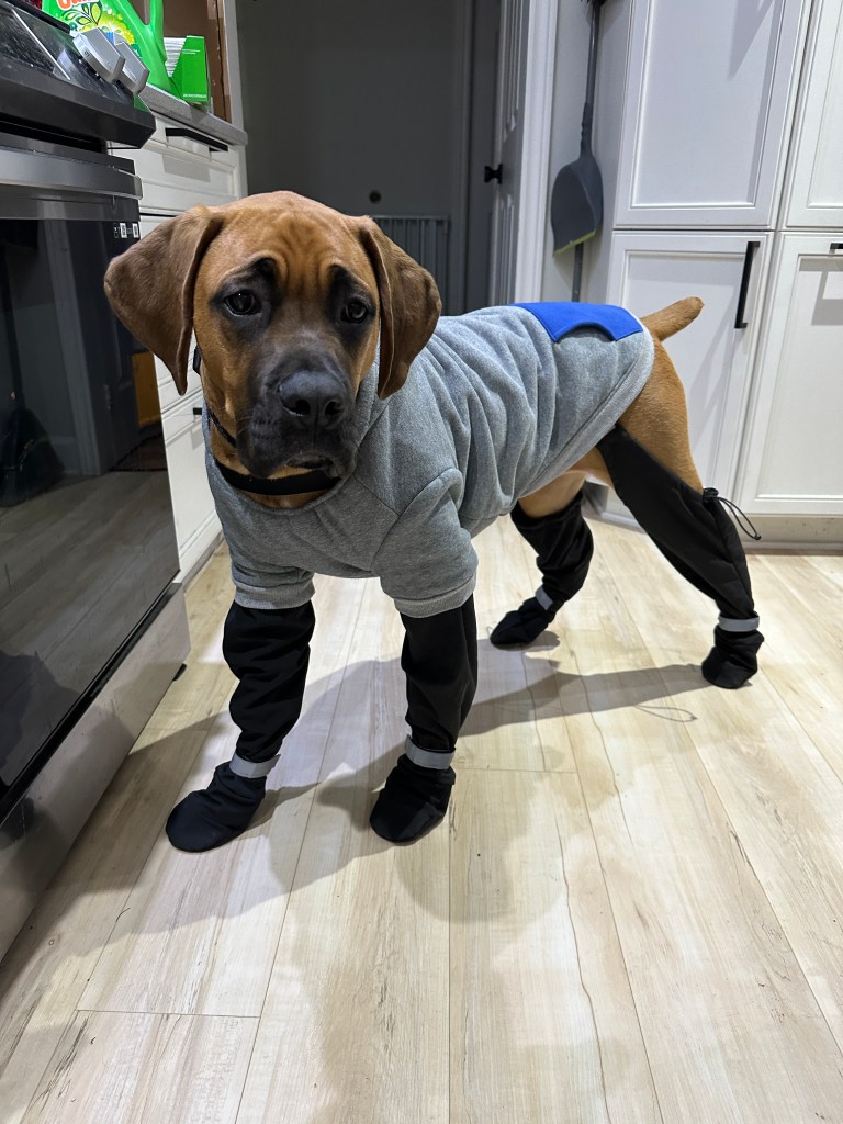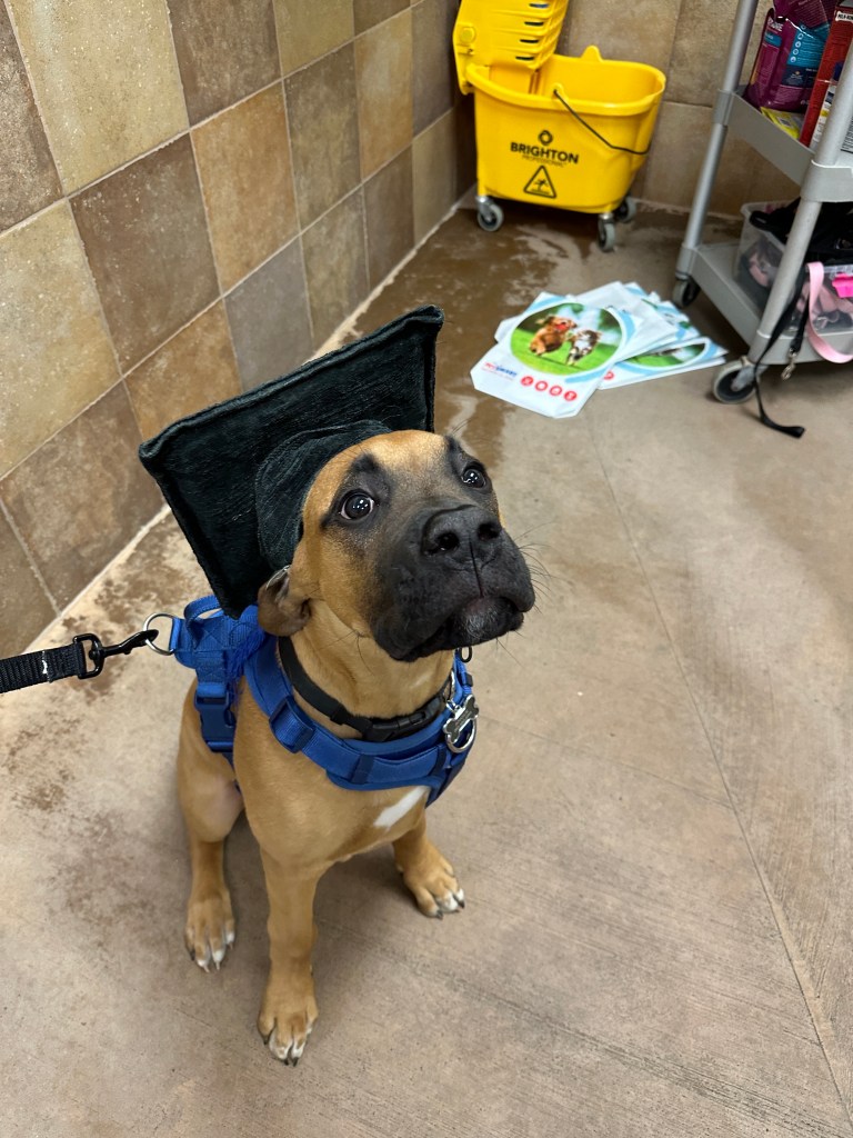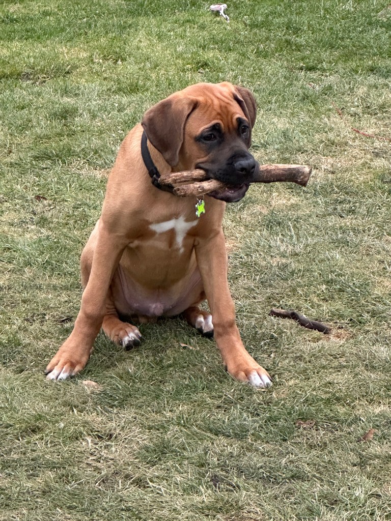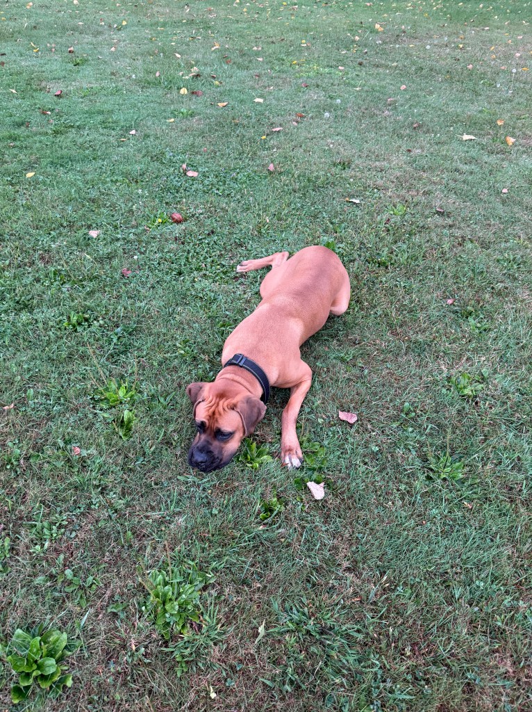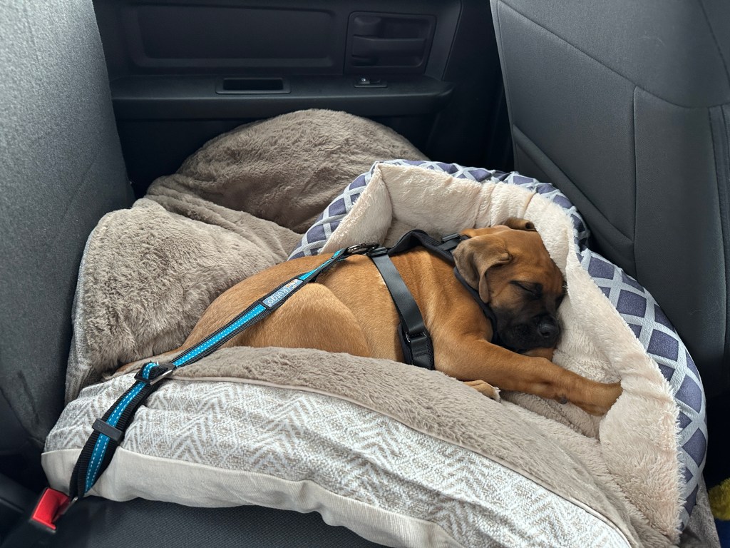 Angus is 2 years old! His birthday is July 21, 2023. He is LARGE. He’s basically another human sleeping in bed with us! Don’t worry, if you meet him – he’s loveable and friendly.