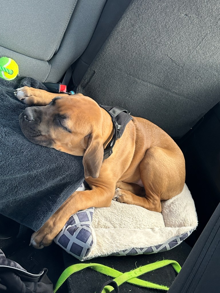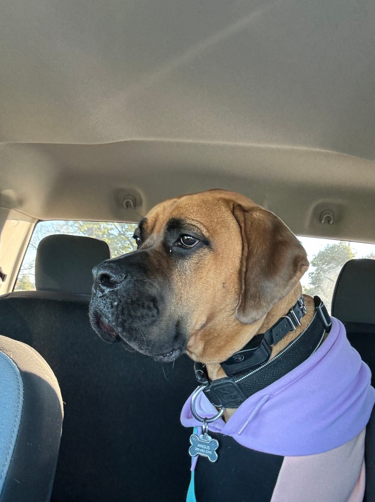 Angus came to be part of our family in a rather interesting way! Layne and I (Cait) had dentist appointments on the same day in September 2023. Layne had a morning appointment, and I had an afternoon appointment this day, and we don’t totally know why I went with Layne in the morning. However, it worked out as the appointment after Layne had cancelled, so I was able to stay and wait.