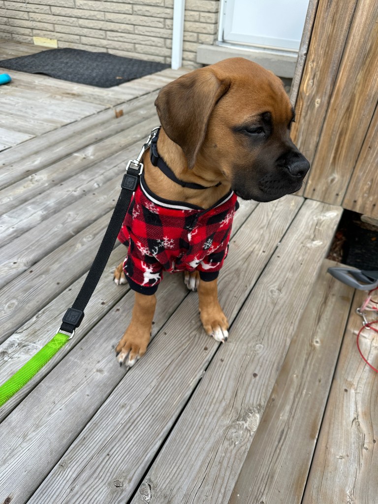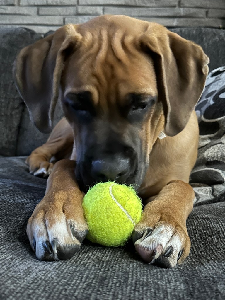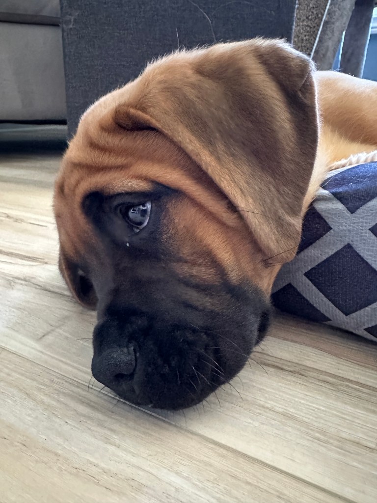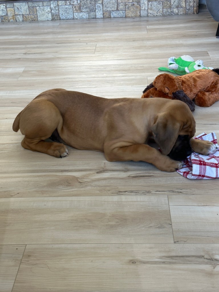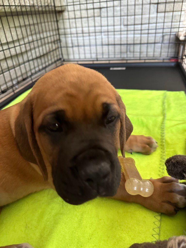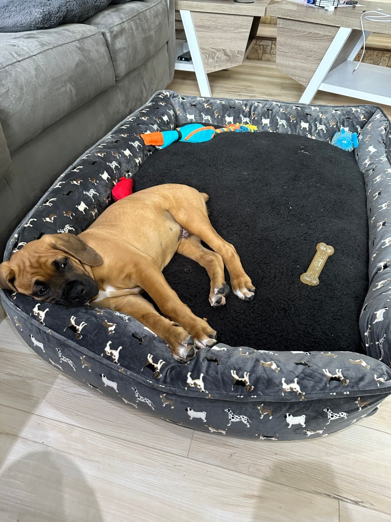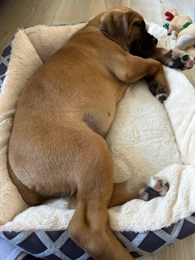 We hummed and hawed for a while (which was probably only 2 minutes) and decided to take this loveable fur-ball home. We decided on the name Angus because the lead singer of AC/DC is Angus Young. This is one of Layne’s favourite bands. Just like a “Highway to Hell”, Angus went from calm, sweet and gentle to full blown high energy boxer in 2 days!