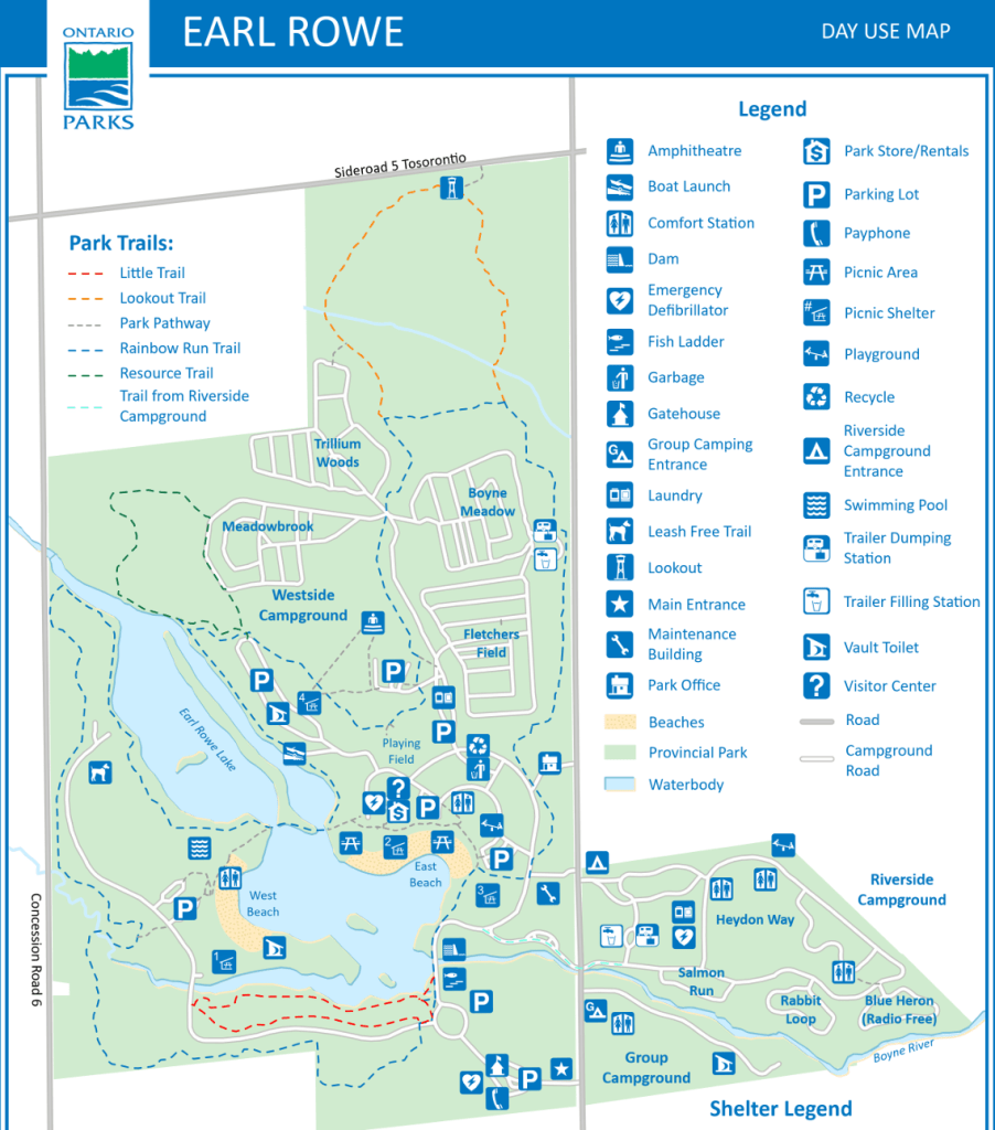 Earl Rowe Provincial Park is located in Adjala-Tosorontio, near the town of Alliston in Simcoe County, Ontario. This area is known for its rich agricultural roots, rolling countryside, and welcoming small-town charm. Alliston itself is famous for its potato farming and vibrant local community, while the surrounding region offers a mix of farmland, forests, and rivers that highlight the natural beauty of central Ontario. Just an hour’s drive from the GTA, the park sits in a convenient location that feels worlds away from the bustle of the city.